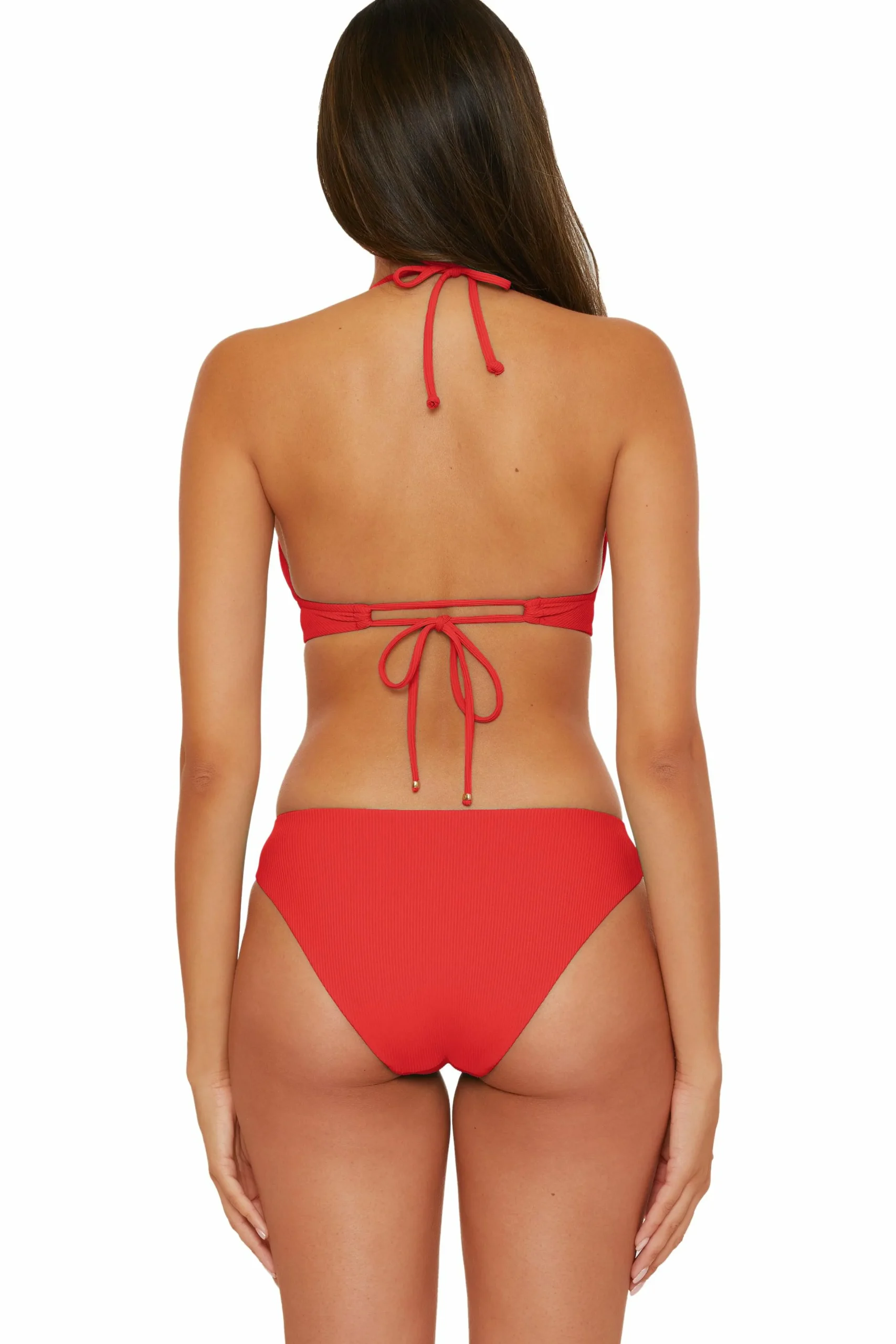 -Open back with adjustable loop tie w/ gold cinch beads