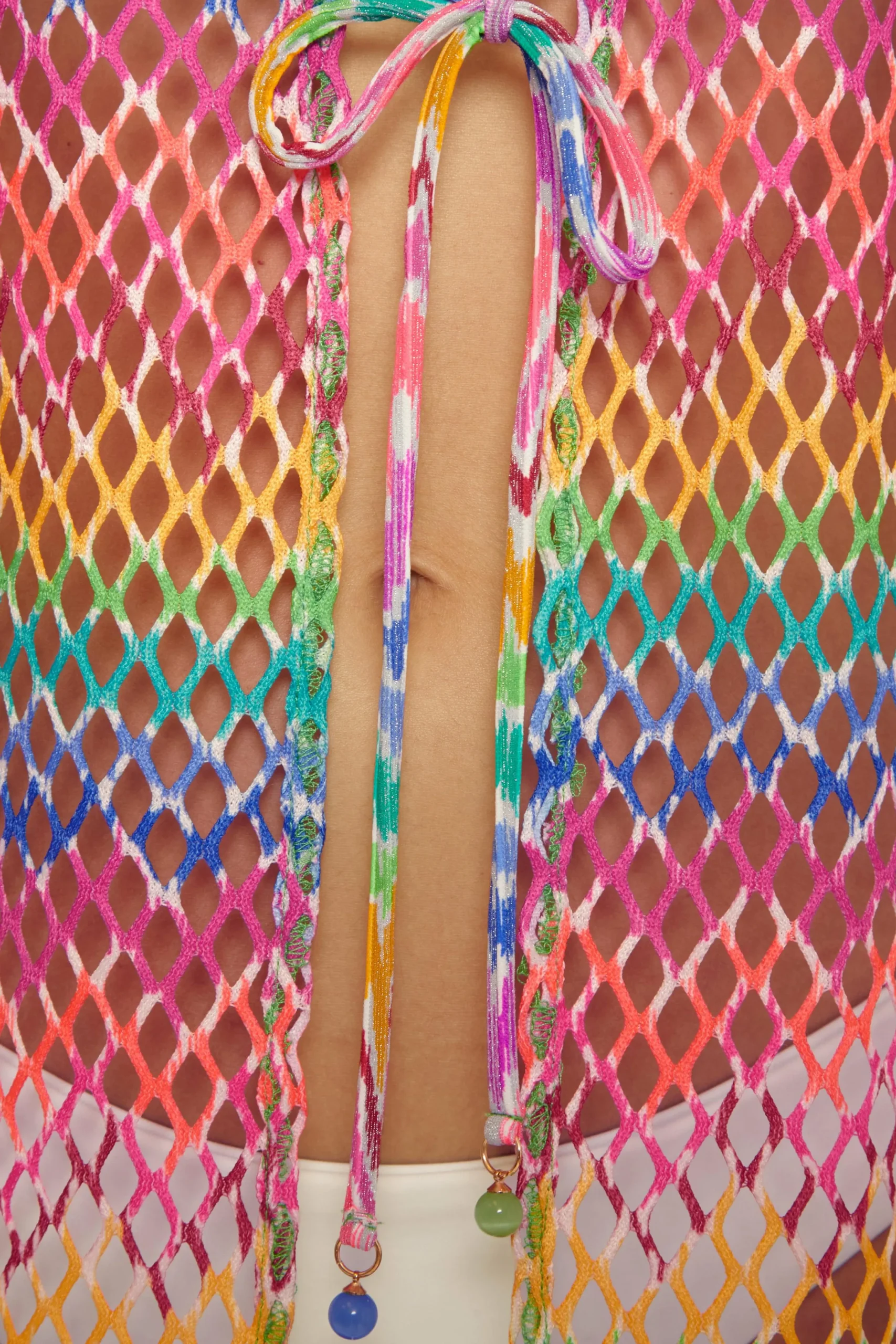 -Adjustable front tie with marble bead charms