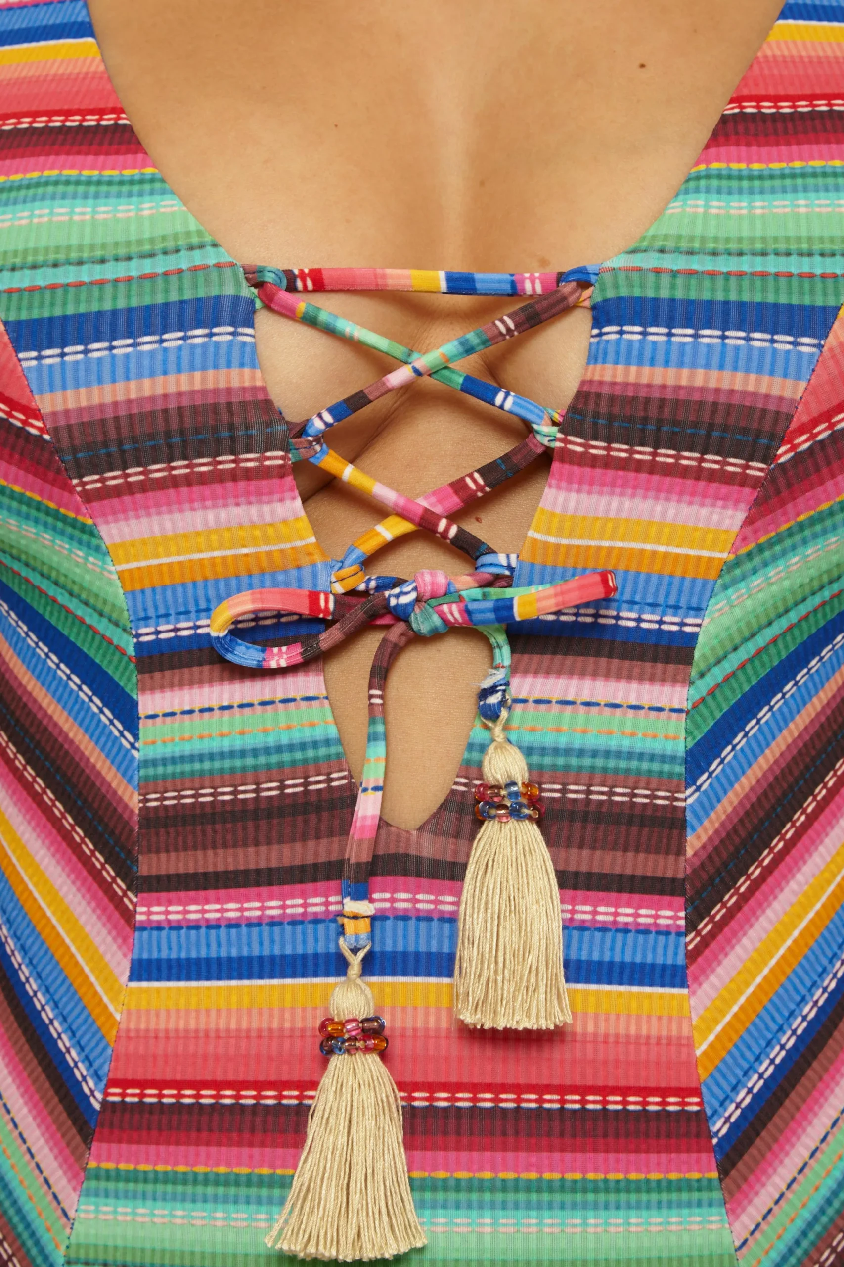 -Natural threaded tassels with multi-colored seed beads