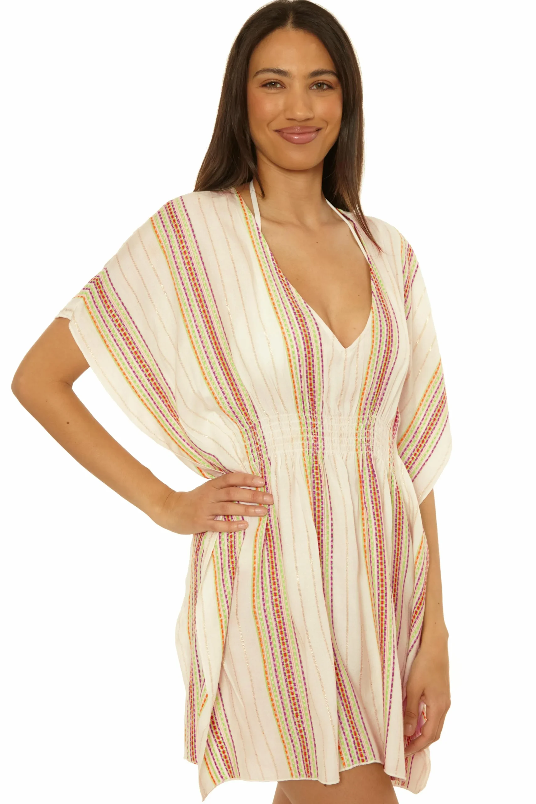 -Plunge neckline | smocked elastic front