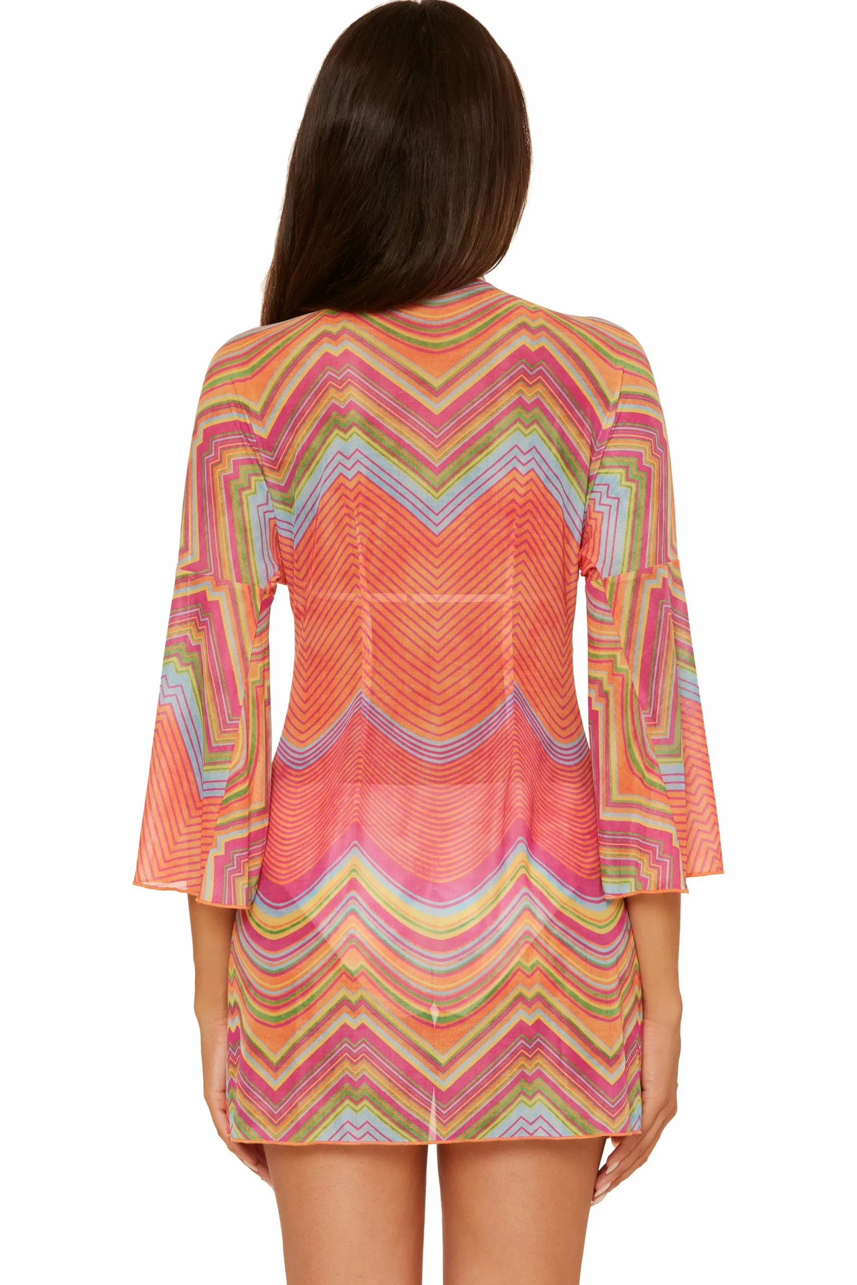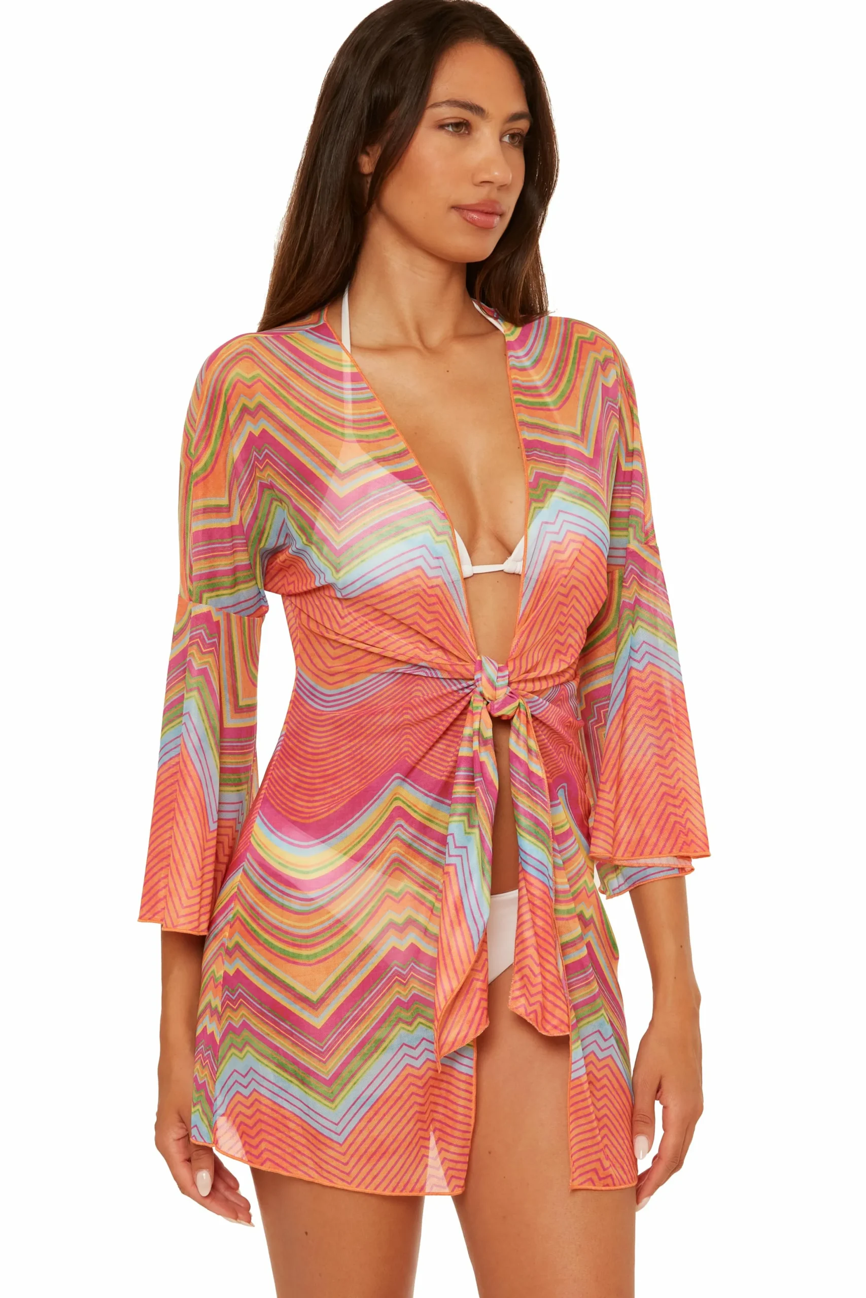 -Tie front cover-up with long bell sleeves